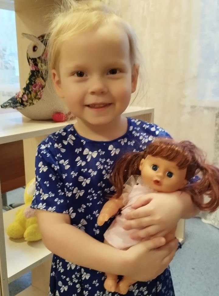 Аня — активная, любознательная и ласковая девочка. Быстро адаптируется в новых ситуациях, не боится незнакомых мест и людей. Свободно идёт на контакт с взрослыми и сверстниками, улыбчива и приветлива. Девочка энергична и свободолюбива. Заинтересована в познании нового, легко включается в игру и интерактивные занятия. Самообслуживание находится на хорошем уровне. Аня сама одевается и раздевается, умело застёгивает пуговицы и молнии. Гигиенические навыки развиты соответственно возрасту: регулярно моет руки, правильно держит ложку и вилку, аккуратно кушает.